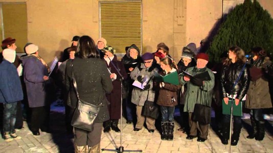 A Balassi Bálint Nyugdíjas Klub kórusa és a Klafszky Katain Tagiskola énekara a pusztasomorjai adventi forgatagon – 2012.12.08.